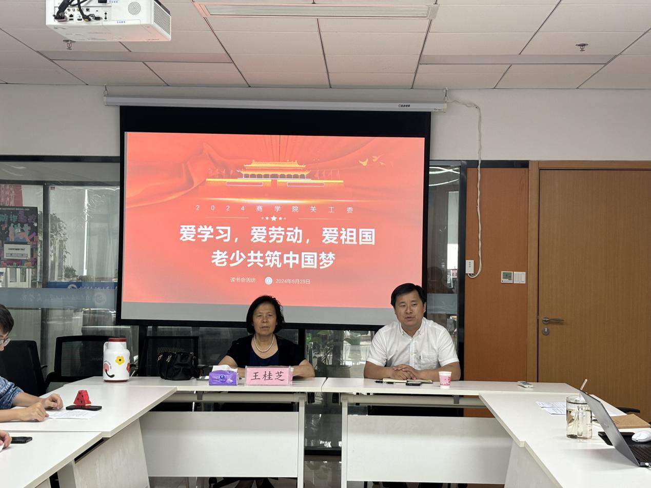 为增强大学生民族自豪感,传承红色基因,进一步强化青少年报国之志、爱国之心,商学院关工委特邀请老教授、老党员、老干部王桂芝于5月29日下午参加商学院“爱学习、爱劳动、爱祖国老少共筑中国梦”主题教育读书会活动,商学院党委副书记陈银出席读书会,活动由陈银主持。