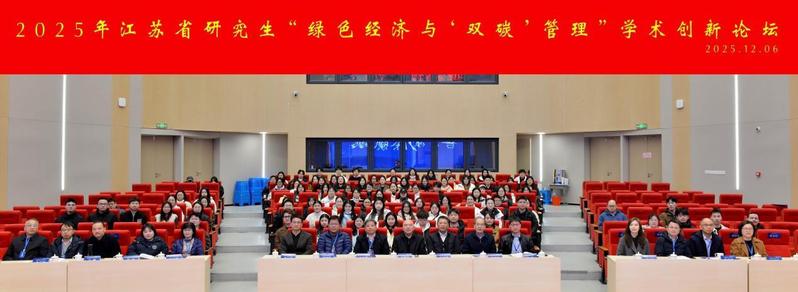 2025年12月6日-7日,江苏省研究生“绿色经济与‘双碳’管理”学术创新论坛在南京信息工程大学举行。论坛由江苏省管理学类研究生教育指导委员会主办,南京信息工程大学研究生院、商学院承办。会议围绕绿色经济与低碳管理前沿议题展开,收到省内外近40所高校的120余篇投稿,为高校专家学者与研究生搭建了高质量学术交流平台。