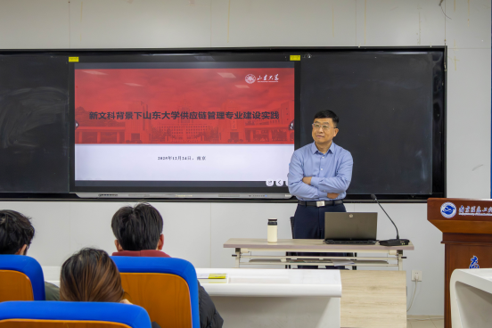 2025年12月24日,商学院在阅江楼426成功举办新文科背景下山东大学供应链管理专业建设实践分享会,此次讲座特邀山东大学孟庆春教授担任主讲嘉宾,讲座由邱玉琢院长主持,何正全副院长、供应链管理系教师、2023级、2024级、2025级京东实验班全体学生和2025级各班新生参加了此次讲座。本次讲座系统拆解专业建设的核心逻辑与实践路径,为新文科背景下经管类专业高质量发展提供了可借鉴的“山大方案”。