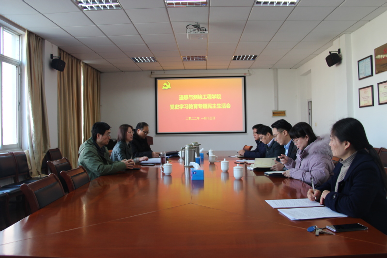 1月13日上午,遥感与测绘工程学院在北辰楼召开2021年度党史学习教育专题民主生活会。全体院党委委员参会,校纪委副书记汪保安莅会指导,院长金双根、两办主任、党务秘书列席会议。会议由院党委书记成芳主持。