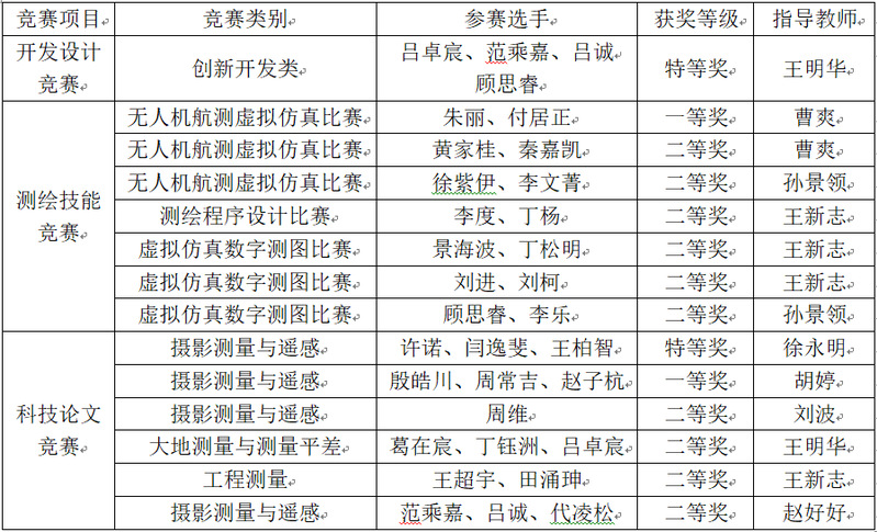 7月20日-21日,由教育部高等学校测绘类专业教学指导委员会指导、中国测绘学会教育工作委员会主办的2022年全国大学生测绘学科创新创业智能大赛决赛在安徽大学举行。经过两天的激烈角逐,我校参赛队获专业组特等奖2项、一等奖2项、二等奖11项,王明华老师获得“优秀指导教师”称号,获奖等级与数量均创我校历史最好成绩。