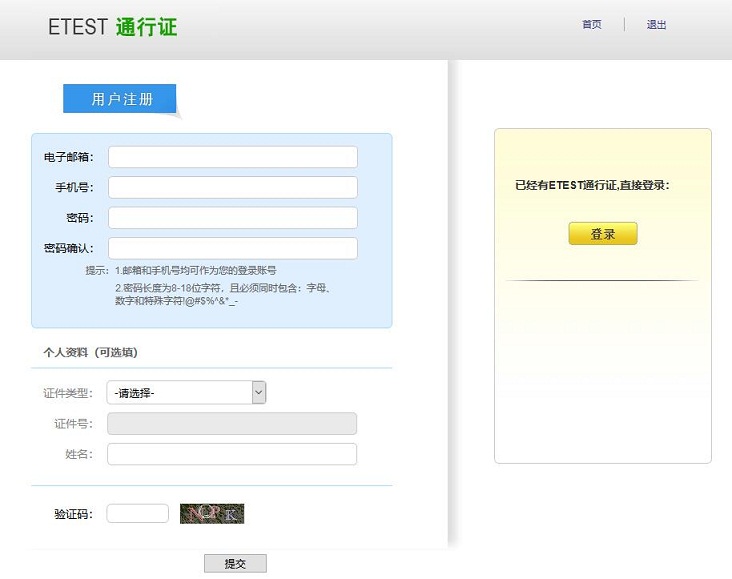 二、注册ETEST通行证