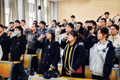 随后,由2020级遥感科学与技术专业常悦同学带领考研学子进行宣誓,大家全体起立,紧握右拳,作出庄严宣告:考研虽艰,不敌无悔信念;坚定之择,可铸青云之志;研途之征程,我必搏击长空;自律加勤奋,我必终成硕果!最后,学院为每位同学送上了精心准备的“励志加油包”,表达了对大家的温暖关怀与美好期盼。同学们还在印有“誓约成硕,遥测院追梦人必胜!”的横幅上签名留念,大家携手连心,许下共同的心愿。