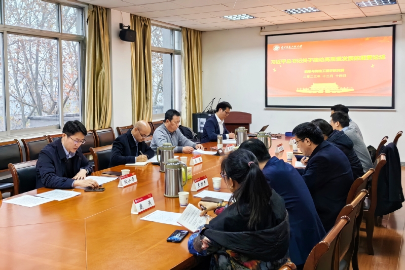 院长童旭东、副院长王国杰做重点发言。他们表示,高质量发展作为全面建设社会主义现代化国家的首要任务,这对高校教育事业发展提出更高要求,学院发展必须融入学校整体布局,同时着力打造自身特色。学院应当深入贯彻落实习近平总书记关于高质量发展的重要论述,履职尽责、开拓创新,以新气象新作为推动学院高质量发展。随后,院党委理论中心组其他成员结合自身学习体会和工作实际进行了研讨发言。