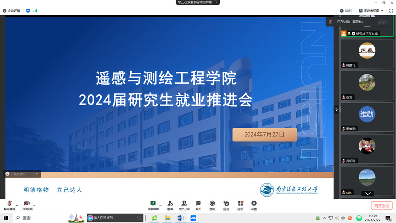 为进一步推进研究生就业工作,7月27日晚,遥测院召开2024届研究生就业工作线上推进会。遥测院副院长谢涛,院党委副书记、副院长吴鹏飞,全体研究生导师及相关辅导员参会。会议由谢涛主持。
