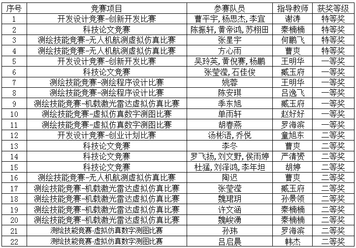 遥测学院一贯重视双创工作,统筹部署学院竞赛事项,安排专人负责备赛工作,提档升级竞赛软硬件设施,改善竞赛环境条件,设立实行动态化入驻管理的双创专用工作室,全力保障学生顺利参赛。赛前多渠道宣传该项赛事,使学生了解赛项内容及要求,广泛动员学生根据自己专业知识、兴趣爱好、软件开发水平、创新创业能力等选择适配的参赛项目,并通过举行测绘技能大赛、科技论文盲审推荐和开发设计项目答辩评审等形式选拔优秀学生和科技作品参赛。选择责任心强,乐于奉献,竞赛指导经验丰富的老师组建竞赛指导团队,团队成员集体研读竞赛规则,统一指导参赛学生,针对不同项目制定日常培训计划和暑期集训方案,利用线上和线下方式全力精心指导参赛选手,开展多轮项目模拟演练和创新创业项目答辩汇报工作,并对备赛中存在的问题进行及时解决,不断提升学生竞赛能力。未来,学院持续加强创新创业教育工作,以赛促教,以赛促学,以赛促创,强化专业实践技能培养,突出软件开发与应用能力,提升科技论文写作水平,将创新创业理念深度融入专业培养环节中,努力培养出更多具备创新思维和实践能力的测绘遥感专业人才,为测绘遥感地理信息产业的转型升级和学科发展提供有力支持。