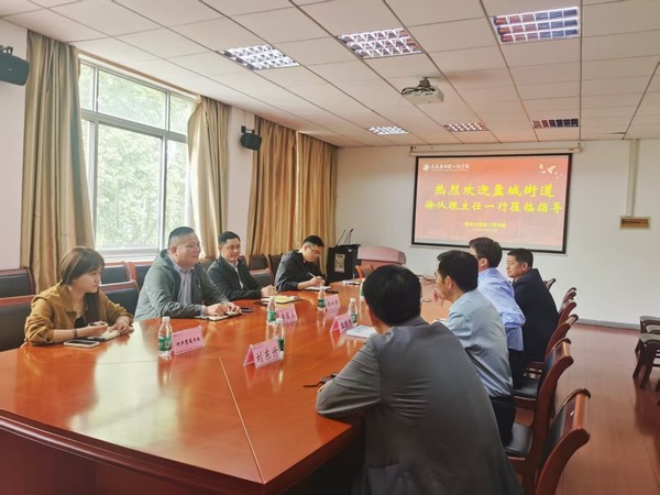 4月22日上午,江北新区盘城街道党工委副书记、办事处主任徐从根一行来遥感与测绘工程学院就科技项目招商、研产贯通进行交流。学院党委书记耿小雷、副院长王国杰以及教师代表参加交流会。