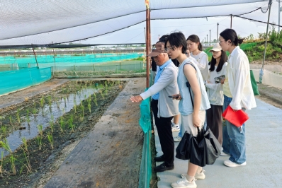 “盐青绿产”小分队深入盐城乡村振兴一线,以遥感测绘专业视角探寻科技与生态融合的发展密码。在江苏省产业技术研究院高通量计算研究所,队员们与技术专家深入交流,了解绿色算力赋能产业转型的实现路径;七星农场的智慧农业示范区让同学们大开眼界,技术员演示了遥感监测系统:“这套系统可以实时监测作物长势,精准指导田间管理。”学富镇的小龙虾养殖特色产业链、田盛源农场的“稻蛙共养”立体种养模式、丹顶鹤保护区的湿地生态发展样本,无不彰显着科技赋能乡村振兴的“盐城智慧”。