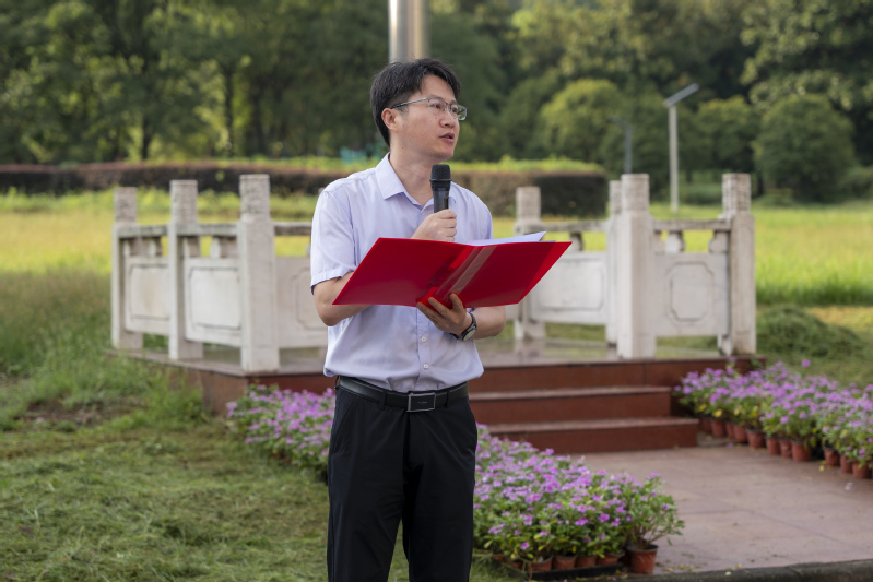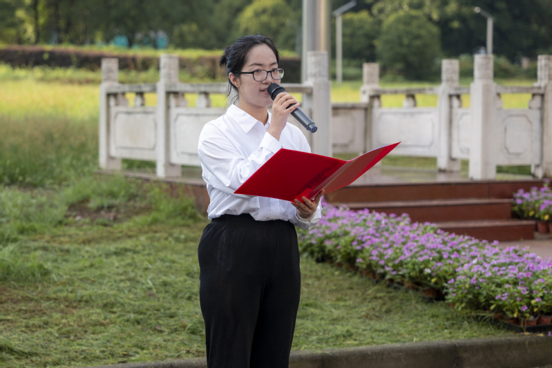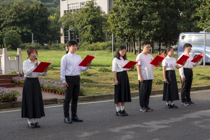 在仪式现场,由学院“星青年宣讲团”成员胡熙、李怡锦、李承泽、范静怡、钮梓怡、朱家宝六名同学带来诗朗诵节目《科技筑梦 星河长明》。他们用声音展现出新时代青年“心怀国之大者、勇担时代使命”的精神风貌,进一步激发了在场师生矢志创新、科技强国的高远志向。