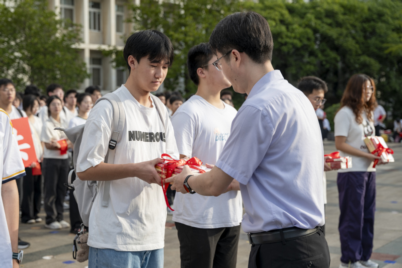 仪式最后,学院党委书记耿小雷为2025级六个新生班级的代表赠送了红色书籍。此次赠书旨在帮助新生“系好大学第一粒扣子”,激励同学们读经典、悟初心、强信念、担使命,以实际行动传承红色基因,争做时代新人。