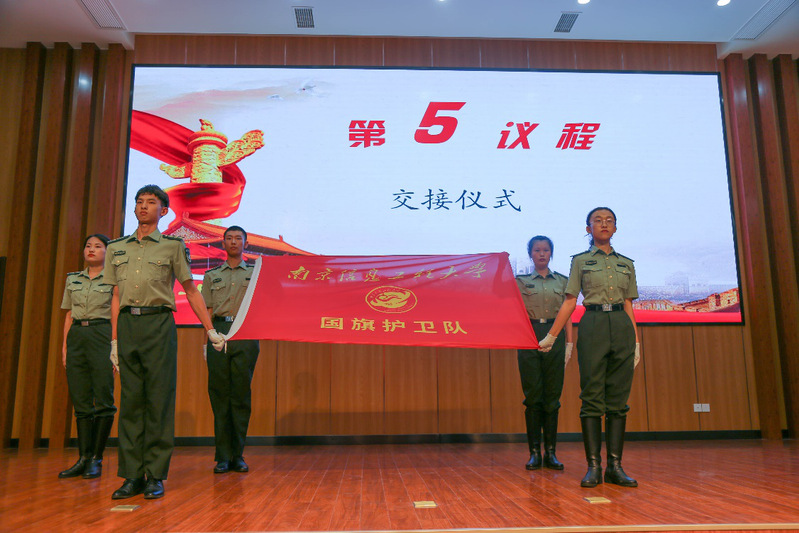 2021年5月22日,南京信息工程大学国旗护卫队于滨江二楼报告厅举行首次换届仪式暨各班文艺展演。校武装部付兆锋老师、颜俊老师、驻宁部份高校国旗护卫队代表、全体国旗护卫队队员及校内社团组织代表,参加本次换届仪式暨各班文艺展演。
