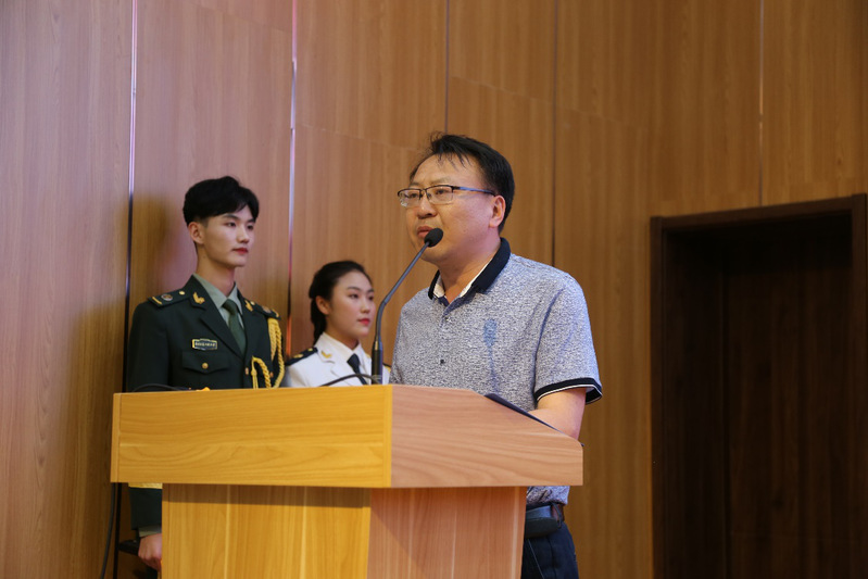 颜俊老师致开幕词,为国护成立以来的工作进行了总结。对国旗护卫取得的成绩,予以肯定和鼓励;对全体队员的辛勤付出取得的工作成果和获得优秀队员荣誉的队员给予表彰;对退队的队员送上祝福和鼓励;对新任骨干寄以希望,将国护队的优良传统和工作作风传递和发扬广大。
