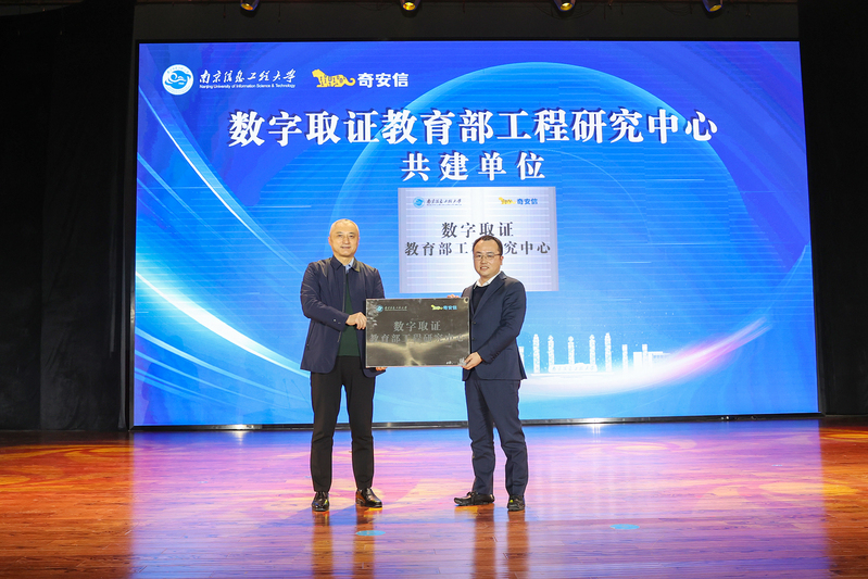 随后,韦忠平代表南信大向奇安信集团授予的“数字取证教育部工程研究中心”共建单位授牌。