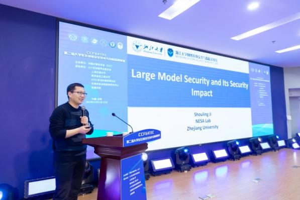 会议特邀报告环节,斯雪明教授和纪守领教授分别从《对加快区块链应用与产业发展的思考》以及《大型模型带来的新兴安全和隐私风险》等方面发表了主旨报告。斯雪明教授介绍了国内外区块链技术、产业、应用现状与思考;纪守领教授通过案例研究探讨了大型模型对安全的影响。两位教授鼓励与会专家能加快区块链高端、复合型人才的培养,鼓励同学们加快培养自身的区块链底层链的自主创新能力。