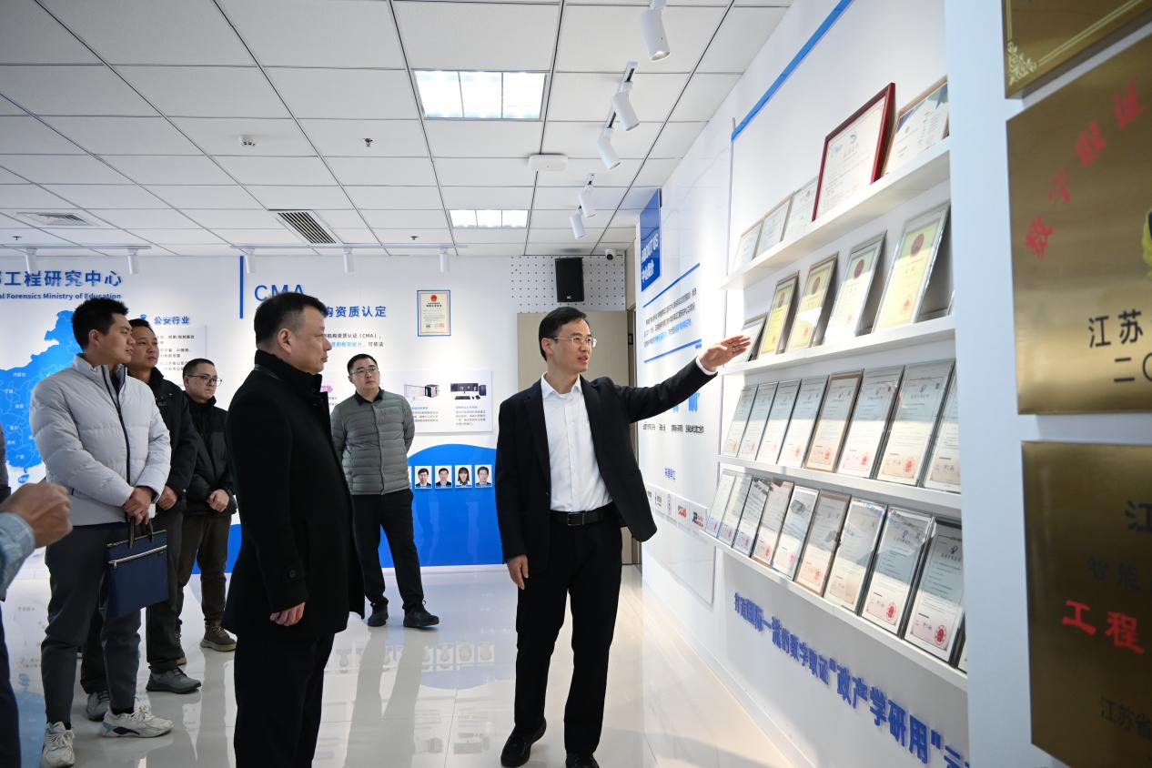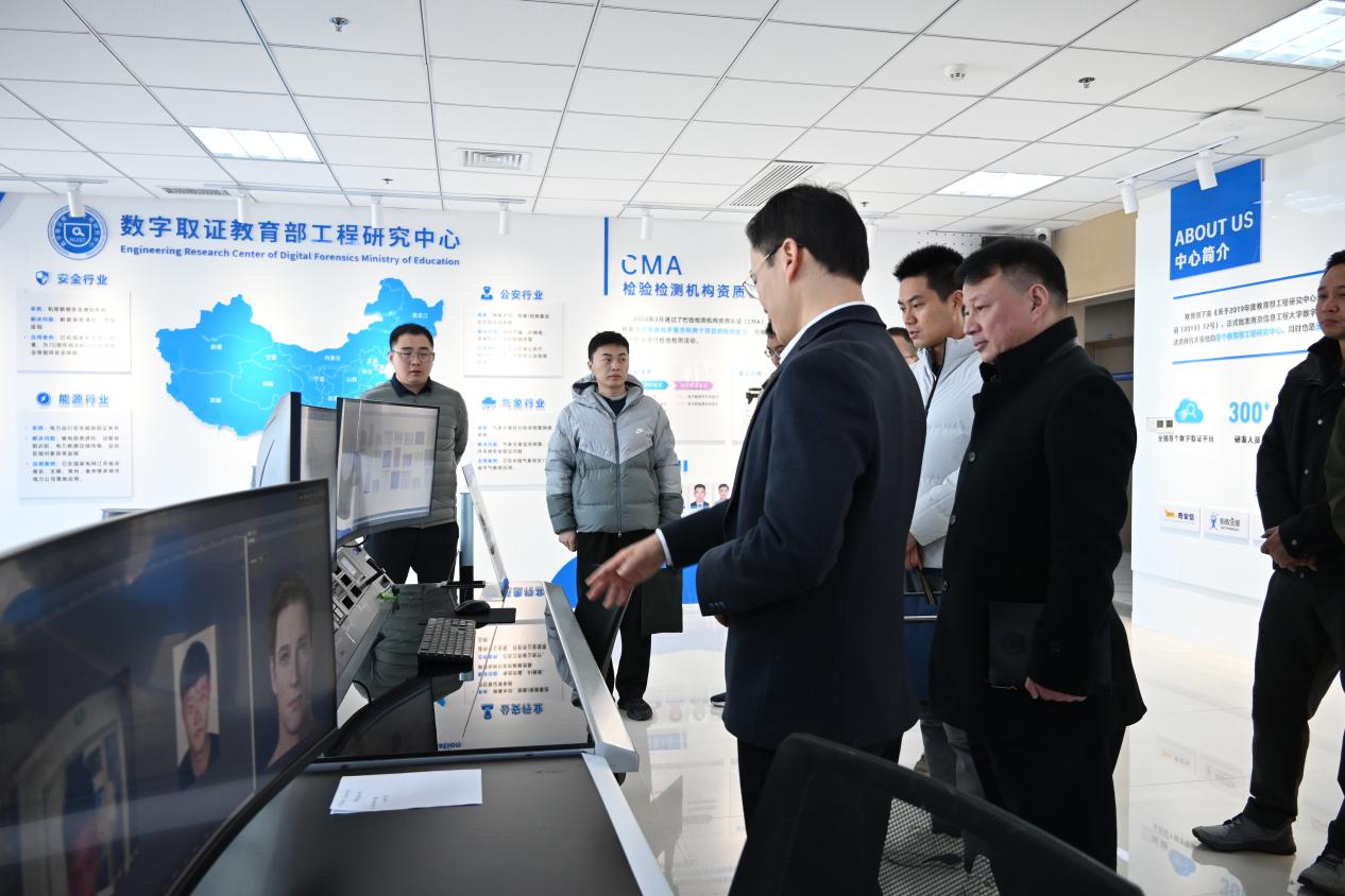 参观交流活动于上午十时正式开始。南京市公安局技术侦查支队的一行在教育部数字取证研究中心进行了深入的参观与交流,全面了解了数字取证中心的产业布局、科研水平、合作成果,并对数字取证中心的技术实力与创新成果表示了高度赞赏。