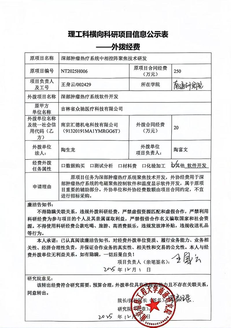 根据南京信息工程大学科研项目外拨经费管理要求,理工类横向项目外拨须进行公示,公示期5个工作日。现对我院拟外拨横向项目有关事项公示如下: