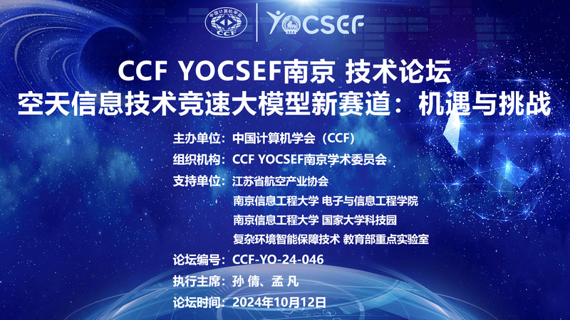 10月12日,“空天信息技术竞速大模型新赛道:机遇与挑战”技术论坛在南京信息工程大学成功举办。论坛由中国计算机学会(CCF)主办,CCF YOCSEF南京学术委员会承办,AC委员孙倩、孟凡作为执行主席。支持单位包括江苏省航空产业协会、南信大电信院、国家大学科技园及复杂环境智能保障技术教育部重点实验室。40余位高校、科研院所的学者及行业从业者参会并展开了热烈交流。