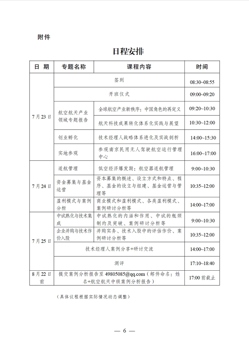 为加强航空航天领域技术转移人才队伍建设,提升技术经理人专业服务能力和水平,有力推动科技成果转化为现实生产力,支撑新质生产力发展,江苏省航空产业协会、南京科技成果转化学院联合国家技术转移人才培养(江苏)基地定于2025年7月组织开展中级技术经理人培训,现将有关事项通知如下: