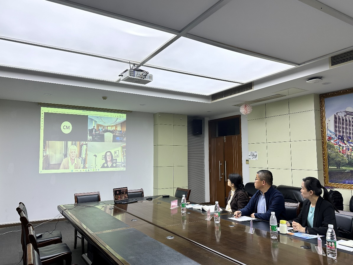 5月24日下午,学院在信息科技大楼B214与外方进行线上会议,爱尔兰东南理工大学国际部负责人、相关项目负责人和中方代表与沃特福德学院班子成员参会。双方着重围绕学生英语能力提升方案沟通讨论,决定依托南信大学术英语教学研究中心教学师资,引进爱方先进教育理念、教学内容和师资,提高学生英语能力水平,提升学生国际胜任力。双方还决定将着力建设学生支持中心,加强国际化氛围营造,为学生发展提供更多丰富资源。