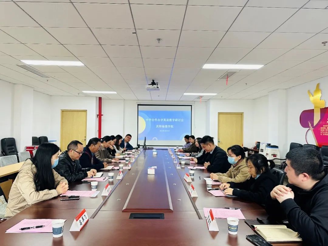 沃特福德学院召开中外合作办学英语教学研讨会为进一步提高国际化办学质量,推进英语教学改革,3月29日上午,沃特福德学院在阅江楼324-325会议室召开中外合作办学英语教学研讨会。会议特别邀请了北京-都柏林国际学院党委副书记、院长吴文英教授作报告。北京-都柏林国际学院党委副书记兼副院长刘今朝,北京-都柏林国际学院学院办公室主任唐昊,文学院副院长、公共英语教学部主任郑友奇,雷丁学院副院长周锦,沃特福德学院副院长王雅敏以及英语教学负责人和英语教师代表参会。