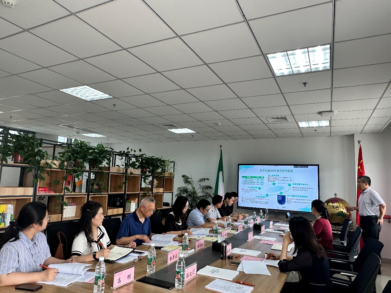 王骥对照学院本科教育教学工作“体检单”,对学院党建、课程建设、外籍教师管理、线上课程资源建设、档案管理各项工作开展提出指导性意见,指出学院需建立完善的日常教学机制,稳扎稳打开展教学工作。邹林斌强调新学院需进一步加强规章制度的建立,以“国际胜任力学分”为契机体现中外合作办学特色,进一步优化人才培养方案和档案管理工作。李志江反馈了督导听评课情况,他指出中外合作办学的课堂教学是重中之重,需不断提升全英文教学质量。教务处其他评估人员反馈了学院教学报告数据,并对学院巡礼材料提出指导意见。