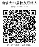 请各学院推荐人选扫描下方二维码,加入“南信大21届校友联络员”QQ群,群号:463627834。