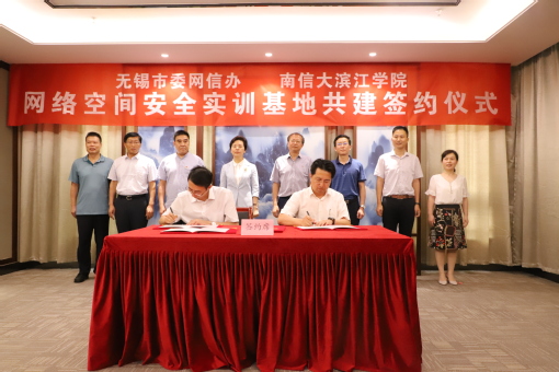 8月9日上午,滨江学院与无锡市委网信办签署网络空间安全实训基地共建协议。江苏省委宣传部副部长、省委网信办主任徐缨,省委网信办副主任包丰,无锡市委常委、宣传部部长袁飞,无锡市委宣传部副部长、市委网信办主任蔡文煜,我校党委书记管兆勇、副校长张永宏,滨江学院相关领导出席签约仪式。我校党委校长办公室、网络信息中心、党委宣传部等单位相关负责人参加活动。