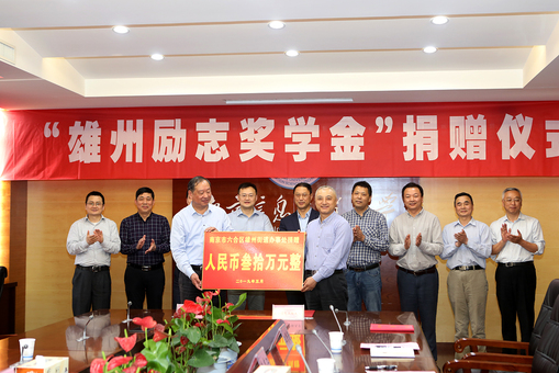 5月8日,“雄州励志奖学金”捐赠仪式在我校行政楼428会议室举行。雄州街道2019年拟向我校捐赠人民币30万元,为南信大优秀学子设立励志奖学金,双方代表签订了“雄州励志奖学金”捐赠协议并颁发了捐赠证书。六合区副区长、科技镇长团团长张励行,六合区副区级领导、雄州街道党工委书记谢庆森,我校领导王尧、韦忠平等出席了捐赠仪式,雄州街道相关领导、我校相关部门负责人参加了捐赠仪式。仪式由校党委常委、组织部长金自康主持。