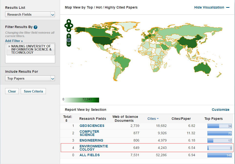 根据校图书馆动态跟踪,在科睿唯安(Clarivate,原汤森路透公司)《基本科学指标数据库》(Essential Science Indicators,简称ESI)9月13日最新公布的数据中,我校环境科学与生态学学科首次进入ESI国际学科排名全球前1%,实现了我校学科建设新的突破。目前我校已有地球科学、工程学、计算机科学、环境科学与生态学4个学科进入ESI国际学科排名全球前1%。