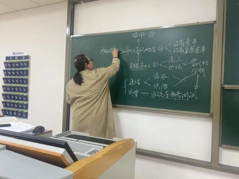 她的课堂,从来不缺欢声笑语。“南信大有一家老王馄饨,因为只有这一家,所以它‘占山为王’……”当讲解到《经济法》中“不加约束的竞争会引发垄断,造成市场调节机制失灵”这一知识点时,宋晓丹老师以贴近同学们日常生活的事物举例,通过诙谐幽默的故事将繁冗的知识点简化。笑声中,同学们对知识点的理解更加深入,印象也更加深刻。