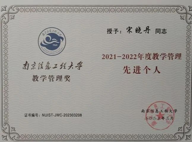 大爱育人行致远,兢兢业业诠奉献。近日,法政学院宋晓丹老师获评“南信大教学管理先进个人”。身为法律系主任的她,曾获校十佳班主任、校优秀共产党员、校教学管理先进个人、暑期“三下乡”社会实践活动优秀指导教师、法政学院第一届师德师风先进个人等多项荣誉。