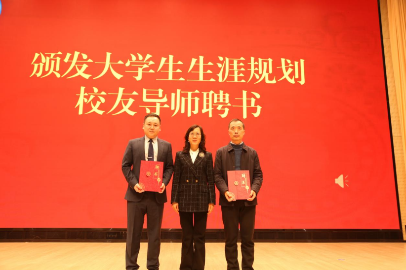 2.颁发大学生生涯规划校友导师聘书