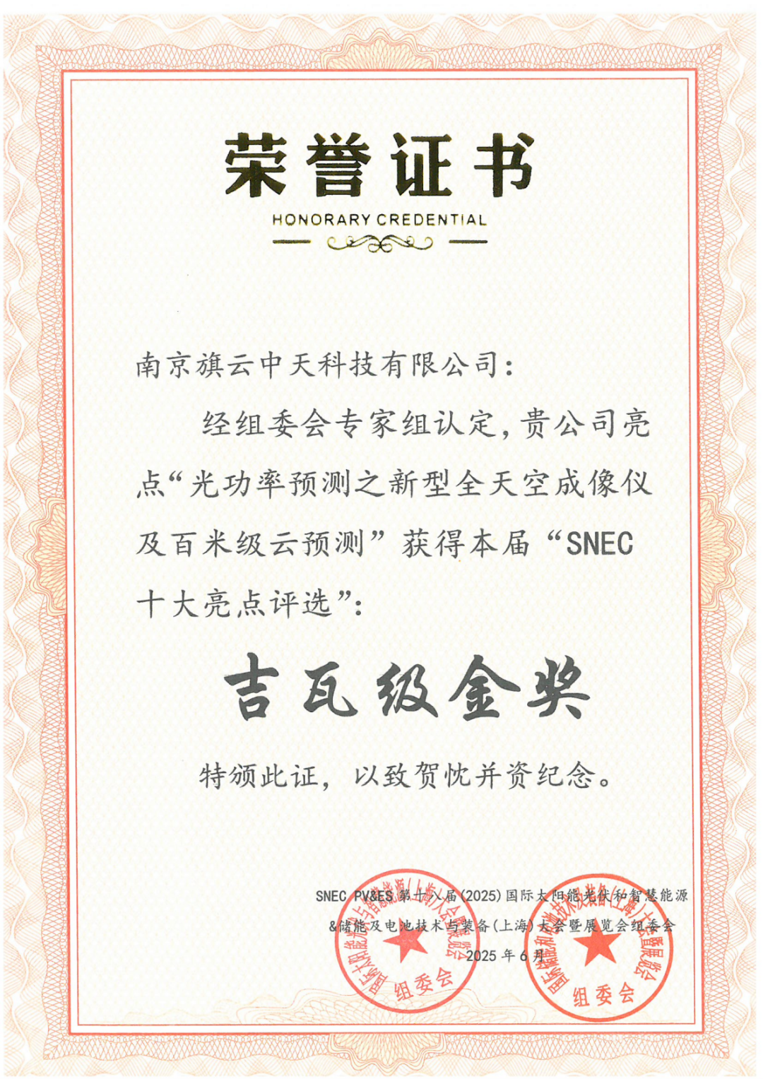 2025年SNEC“十大亮点”吉瓦级金奖