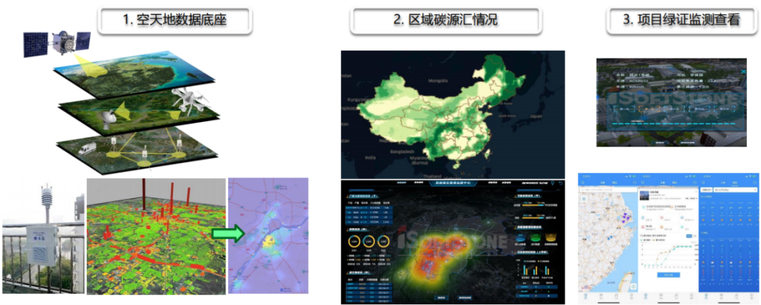 通过空天地一体化观测打造碳数据底座,通过国际互认自主研发YIBS模型实现八大生态系统碳汇评估与预测。