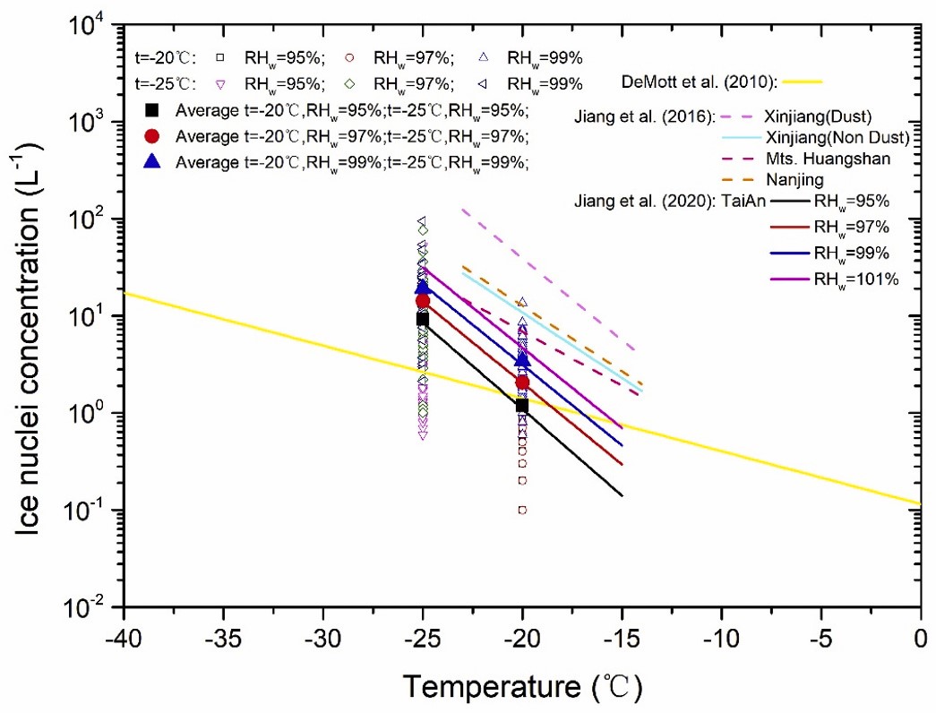 Kui Chen, Yan Yin*, Shuxian Liu , Chao Liu , Honglei Wang , Chuan He , Hui Jiang , Jinghua Chen. 2021: Concentration and variability of deposition-mode ice nucleating particles from Mt. Tai of China in the early summer. Atmospheric Research. doi.org/10.1016/j.atmosres.2020.105426.