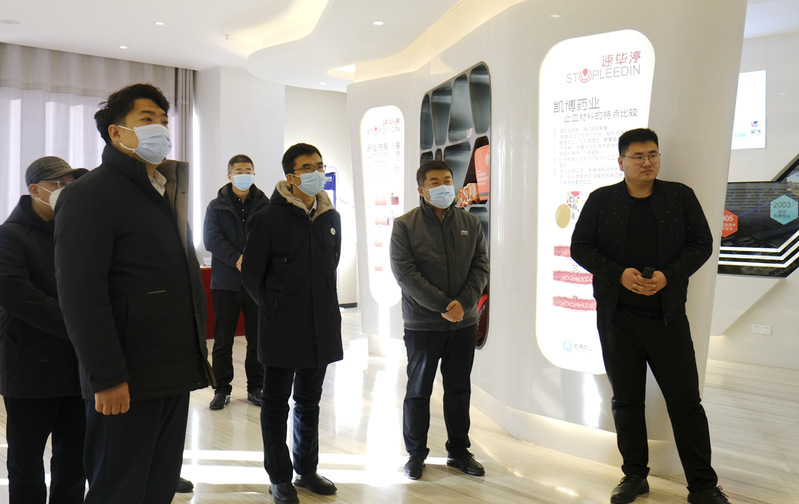 在完成产品调研后,调研组一行在凯博药业会议室举办座谈会。凯博药业董事长山宝军介绍了凯博药业的发展历程、组织架构,重点介绍了凯博药业国内领先的动脉创伤止血材料、应急救援领域急救包市场拓展思路、应急救援产业园战略规划布局等内容。总经理卢昌玮介绍了凯博药业的主营产品及市场规划、核心技术及专利、固定资产及厂房设备等情况。此后,山宝军和与会人员对凯博药业生产存储等车间进行了考察调研,与会人员对凯博药业应急救援产品研发过程有了进一步认知。