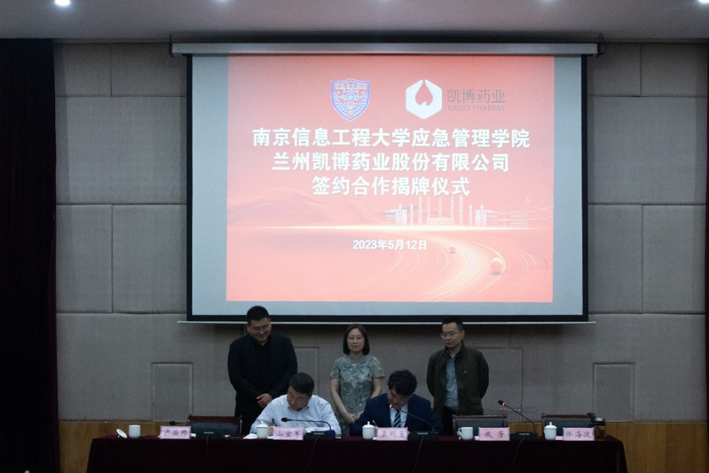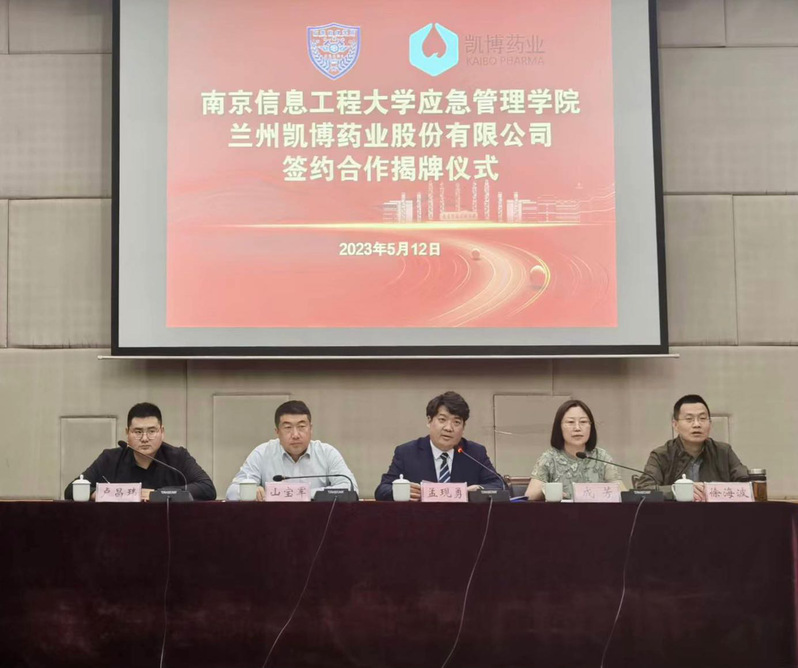 5月12日上午,应急管理学院与兰州凯博药业股份有限公司在长望楼N102报告厅签署了院企合作协议,并举行“实训实践及优质就业基地”“产学研合作基地”揭牌仪式。兰州凯博药业股份有限公司董事长山宝军、总经理卢昌玮,应急管理学院党委书记成芳、副院长孟现勇、副书记兼副院长徐海波以及师生代表参加了会议。会议由成芳书记主持。