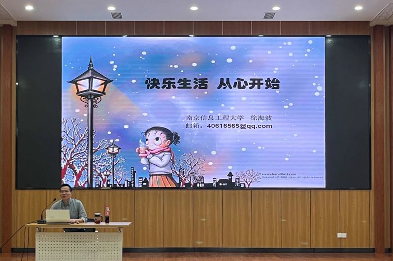 最后,由徐海波老师作“快乐生活,从心开始”主题心理讲座。他聚焦于当下大学生常见的心理问题,并结合自己的大学经历以幽默风趣的方式提醒同学们在努力学习的同时要避免过度焦虑,学会接受自己的不完美,提高自己的抗压能力。