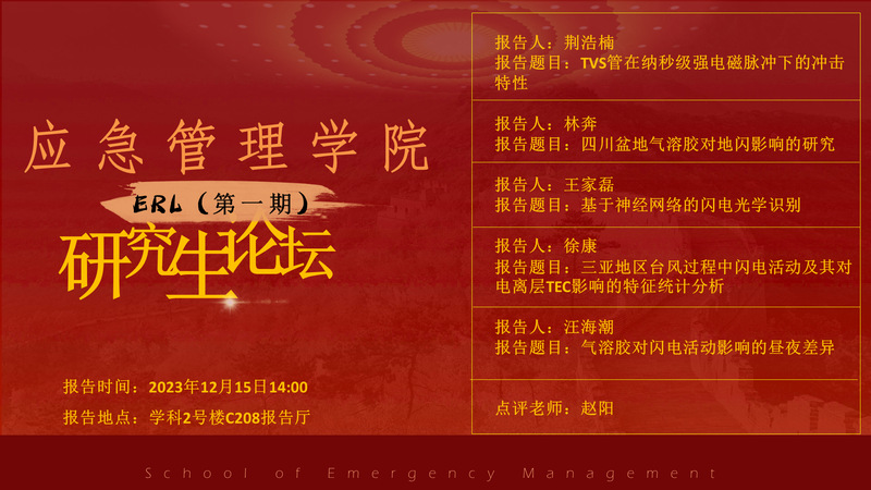 欢迎广大师生踊跃参加应急院首届ERL研究生学术论坛
