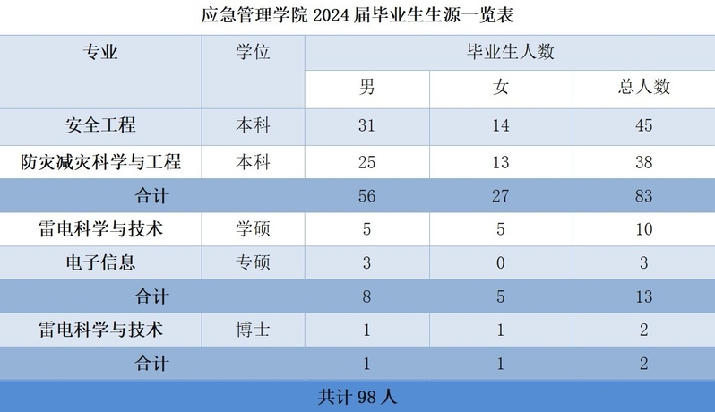 学院具备本硕博完整的教育培养体系和理工管交叉融合的专业课程设置。学院现有雷电科学与技术、应急管理两个博士点;安全工程、应急管理两个硕士点。开设安全工程、防灾减灾科学与工程、应急管理三个本科专业,安全工程专业为2012年教育部“卓越计划”实施专业、2020年获批江苏省一流本科建设专业、2021年通过教育部工程教育认证专业;防灾减灾科学与工程专业为全国首个地学门类(地球物理学)下设置的本科特设专业;应急管理专业在原中国气象局重点专业公共事业管理转设基础上,整合了行政管理国家一流专业资源所创设。