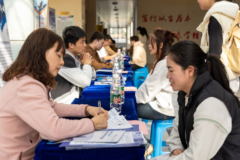 招聘会现场秩序井然,气氛热烈,求职学生积极与招聘负责人交流企业发展和岗位待遇,积极投递简历和面谈交流。与此同时,各单位招聘负责人向学生介绍行业前景和职业发展状况,提供职业规划建议。不少低年级同学参与到招聘活动中,提前了解就业形势和用人单位需求,为未来的求职打下基础。