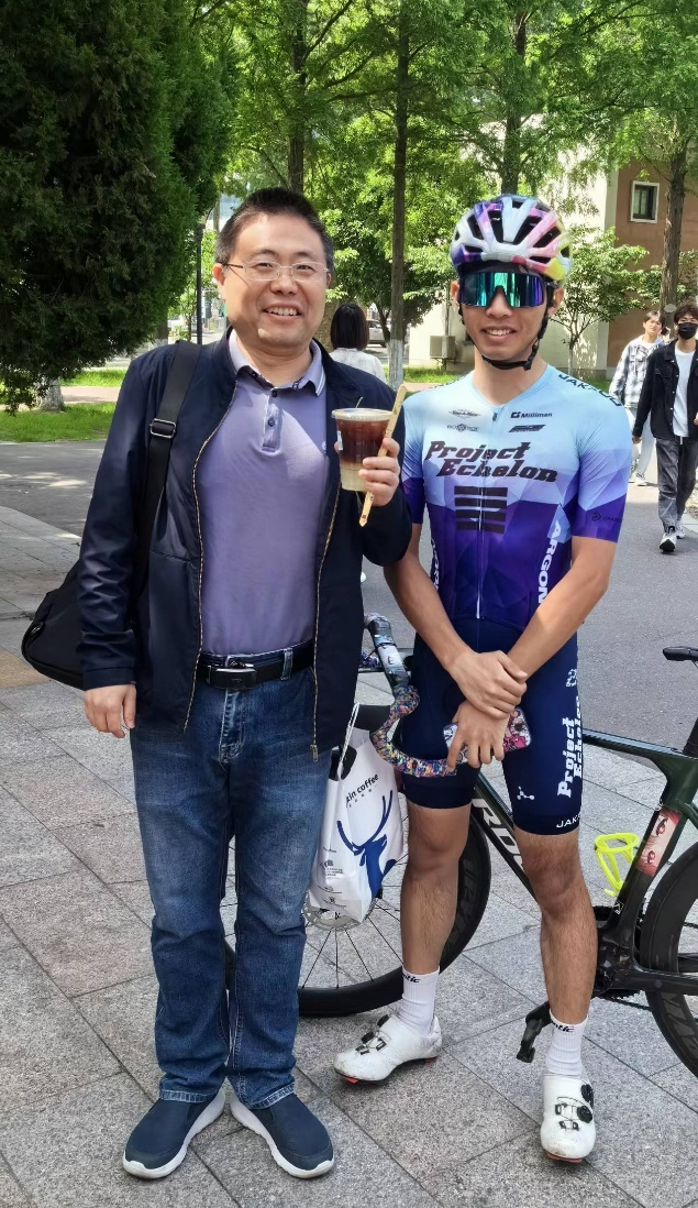 (我校学生特意赶来给高中班主任、章校长送奶茶)