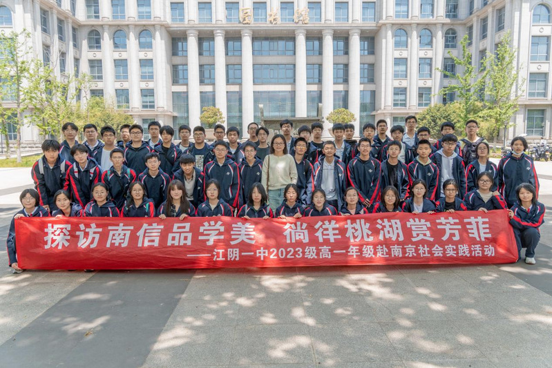 随后,在志愿者和“信大薪火”讲解团成员的带领下,高中学子们依次参观了尚贤楼、风云赛场、图书馆、游泳馆等校内建筑,在老校门“艰苦朴素,勤奋好学”的格言前回忆信大人的艰辛奋斗,在天鹅湖感受清风拂面,在见山园感受雕塑的艺术张力。通过此次研学交流活动,同学们领略了南信大繁花似锦的春光,感受到学校优质学科建设和厚重人文底蕴,憧憬与南信大的“未来之约”。陆续有毕业于江阴市一中的我校学子,赶过来与中学校长和班主任亲切交流,还有学生特意买奶茶送给当时的班主任老师,师生欣喜之情溢于言表。