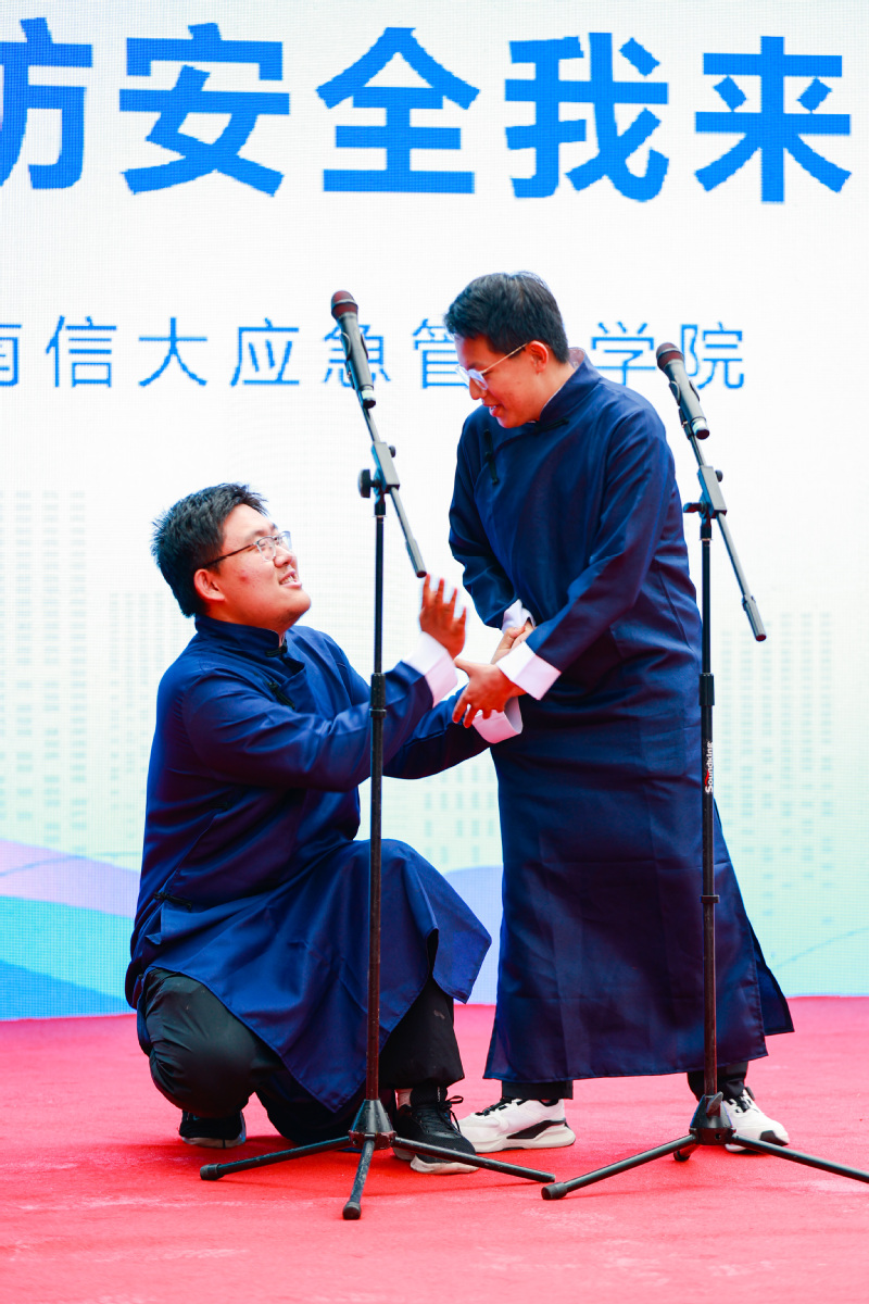 今年5·12第16个全国防灾减灾日,主题是“人人讲安全、个个会应急——着力提升基层防灾避险能力”,每个居民的防灾避险意识和能力,影响着灾害事故的应急响应处置效果。应急管理学院作为共建单位精心打磨的相声节目重在宣传消防安全人人有责,安全胜于一切。