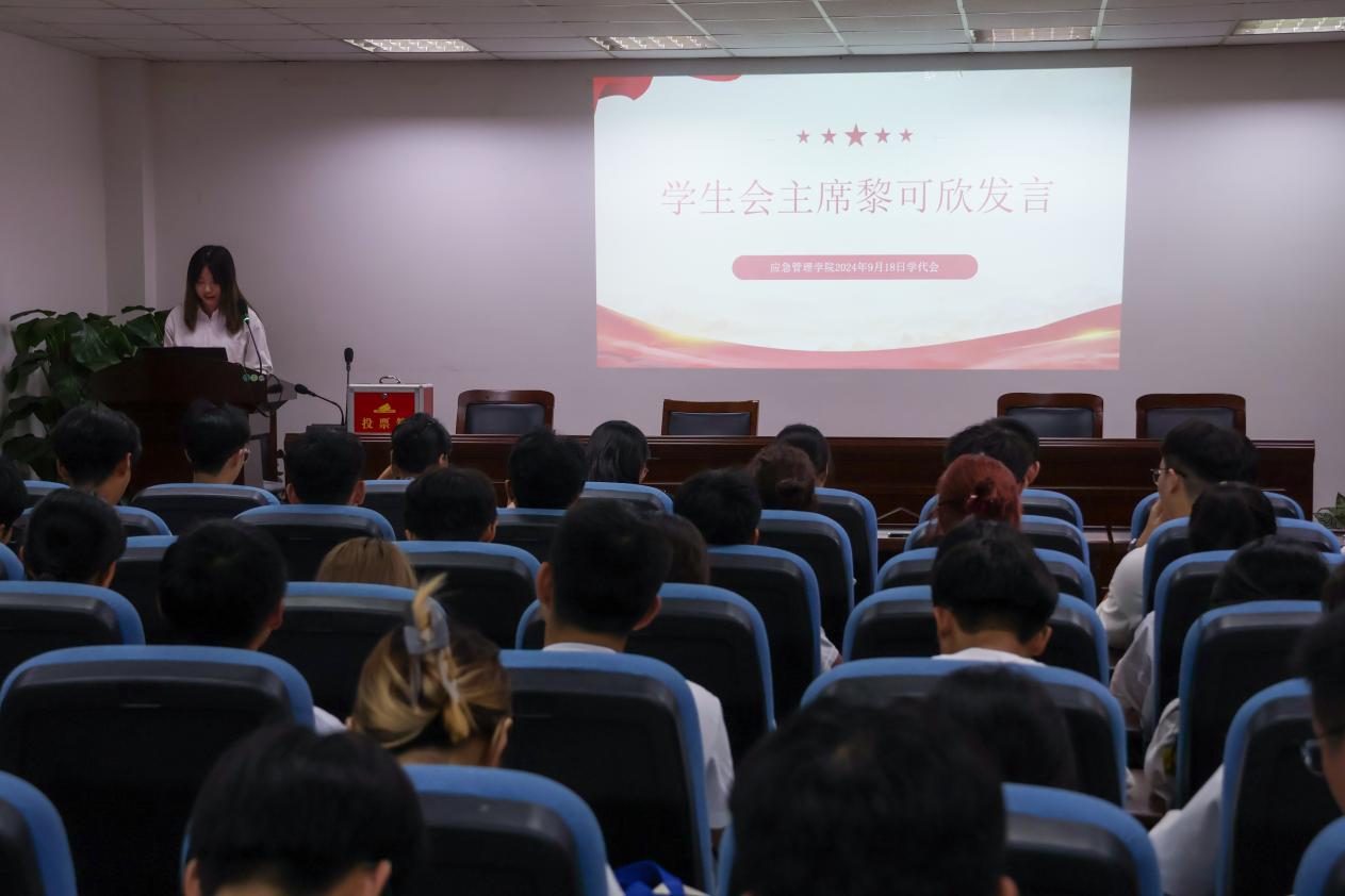 为加强学生自治组织建设,提高学生参与学院管理的积极性和主动性,促进学院学生工作的顺利开展。9月18日下午在文德楼s517召开应急管理学院第二届学生代表大会。辅导员黄欣慧和李潇潇、学院研究生会和学生会的主席团成员、竞聘成员以及各年级学生代表参加了本次会议。