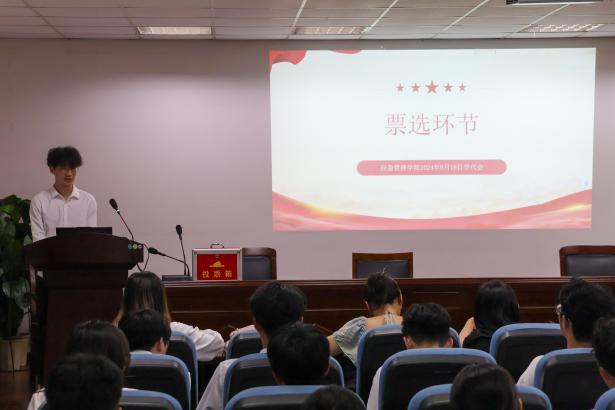 接着进入票选环节,本着民主、公开、公正的原则,各学生代表和学生会主席团成员采用无记名投票的方式进行选举投票。