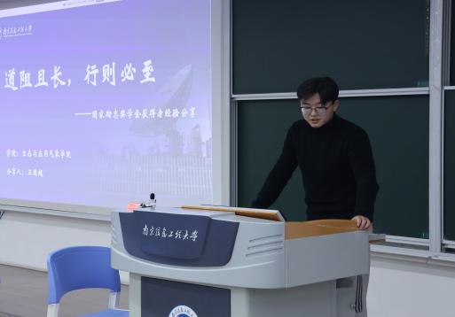 为发挥榜样引领示范作用,激发学生学习动力,12月5日下午,应急管理学院在明德楼N615召开优秀学子事迹报告会。本次会议由辅导员黄欣慧主持,生态与应用气象学院国家励志奖学金获得者王国超、应急管理学国家励志奖学金获得者院张玮、国家奖学金获得者戴乐飏主讲,2024级全体学生参会。