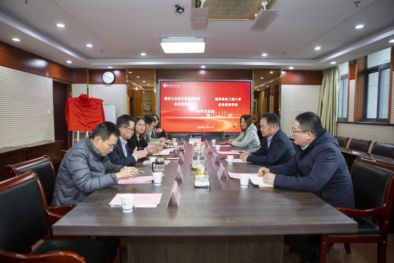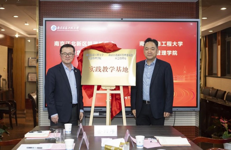 进一步深化校地合作,加强应急管理理论研究与实践应用的结合,共同推进应急管理学科建设,提升区域应急管理水平,12月17日,应急管理学院与南京市江北新区应急管理局在学科2号楼举行了合作共建签约及“实践教学基地”揭牌仪式。南京市江北新区应急管理局党委书记、局长俞晓飞,副局长孔爱国、防汛防旱与减灾救灾办主任张燕、应急管理与信息化办主任王俊,南京信息工程大学应急管理院院长薛勇、党委书记成芳、党委副书记兼副院长徐海波、副院长顾湘、副院长汪俊峰、院长助理袁成出席了本次活动。活动由成芳主持。