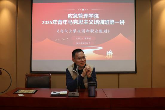 为进一步提升青年学生的思想政治素质和理论水平,培养一批具有坚定马克思主义信仰、德智体美劳全面发展的青年马克思主义者,应急管理学院于2025年3月19日下午在学科二号楼N201-203报告厅开展了以“挺膺担当,奋楫启航”为主题的青马工程培训班开班仪式暨第一次培训。活动由学院党委副书记、副院长徐海波主讲,学院分团委指导老师李潇潇主持,学院全体青马班学员参加培训。