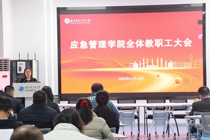 2025年12月17日,应急管理学院在学科2号楼S103会议室召开全体教职工大会。院长薛勇、党委书记成芳、党委副书记兼副院长徐海波、副院长顾湘、副院长汪俊峰及全体教职工参加会议。会议由徐海波主持。